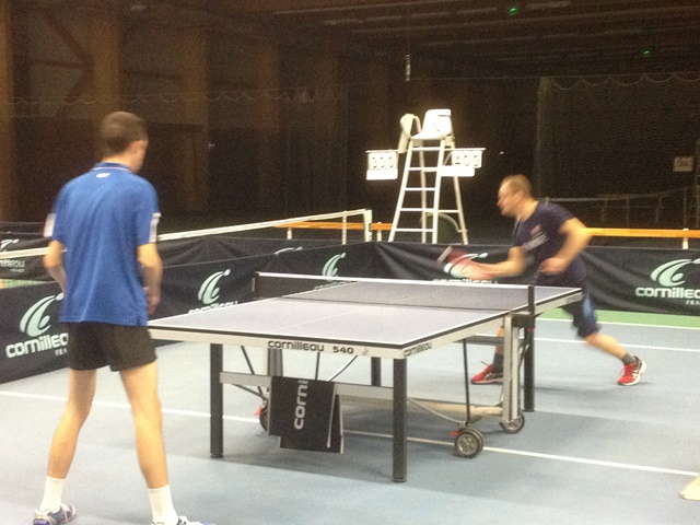 Sur le court, toutes les équipes ne pouvaient pas jouer en même temps. 4 tables centrales ont donc être réservées aux équipes en lice et les 4 autres aux équipes à l’échauffement en attendant leur tour. De 19h à 20h, les arrivées se sont échelonnées, de même que les joueurs sont doucement montés en température.